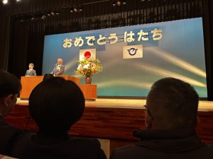 はたちのつどいに来賓として出席しました。今年20歳になる方たちの学年も七里で教えたことがある学年でした。何人かに「先生ー」と声をかけていただき、自分も七里の生徒いないかなと見渡して発見し、声をかけたりしました。元生徒にたくさん会えて嬉しかったです。皆様お元気そうで、楽しそうでした。